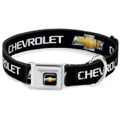 CHEV BOWTIE BLACK/GOLD SEATBELT BUCKLE DOG COLLAR