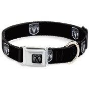 DODGE RAM BLACK/SILVER SEATBELT BUCKLE DOG COLLAR